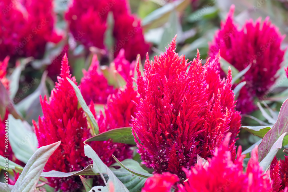 The Cockscomb flowers (Celosia cristata).