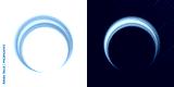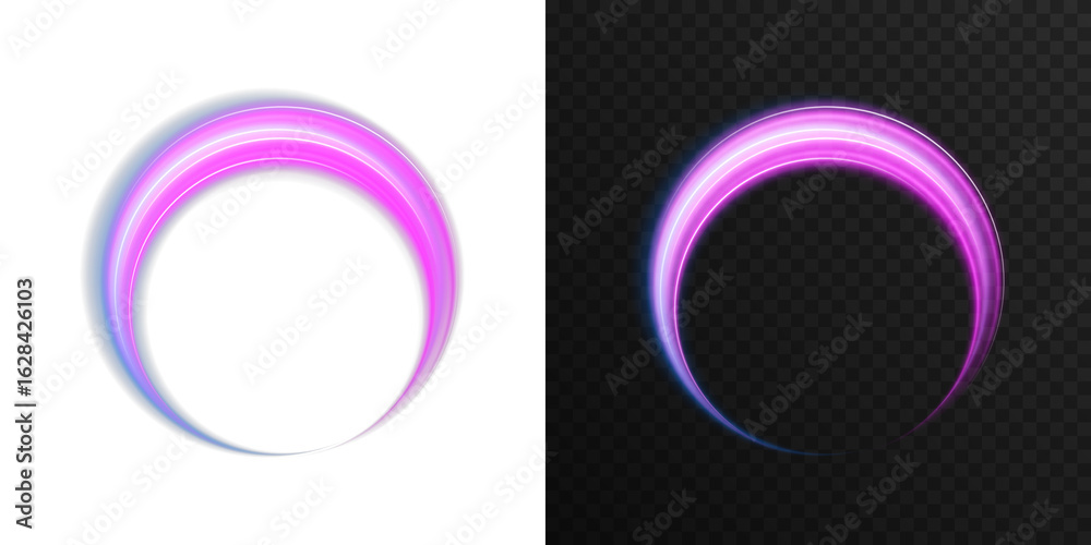 Futuristic glowing neon ellipse in vivid pink, blue, and violet tones on transparent dark background. Magic swirl ring energy flow, abstract portal light effect for sci-fi scenes, fantasy art, and dig