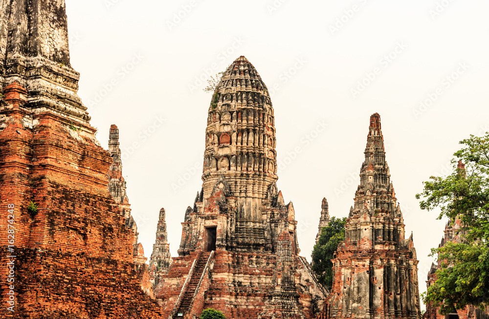 Ancient pagoda at Wat Chaiwatthanaram temple in Ayuthaya Historical Park, Thailand.