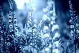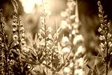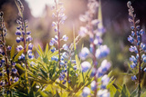 Beautiful summer floral background, lupine flowers in the sunset in a summer forest