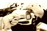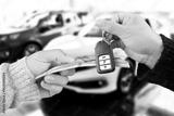 Car buying deal with cash and key exchange, symbolizing vehicle purchase or auto ownership transfer.