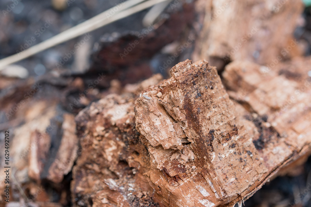 Crumbling Dark Brown Cork Bark Pile Close-Up: Rustic Wood Texture Detail, Natural Debris Background, Dry Organic Matter, Earth Tone Composition.
