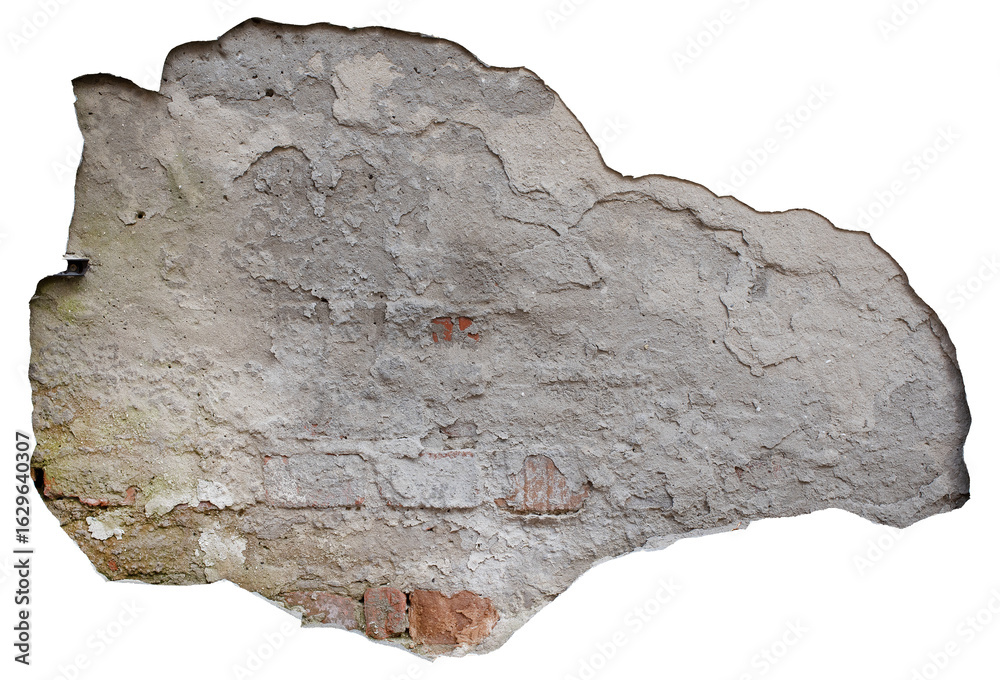 Large hole in plaster revealing brick wall isolated transparent background PNG