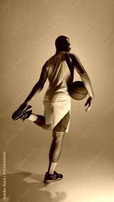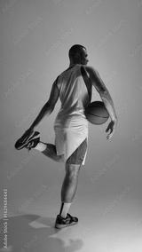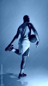 Basketball athlete posing with ball beneath vibrant neon illumination. Concept of exit energy, cinematic walk-off, dynamic muscle pose, and stylish athlete branding campaigns.