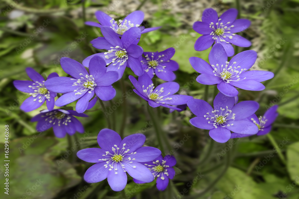 Blue hepatica flowers in spring