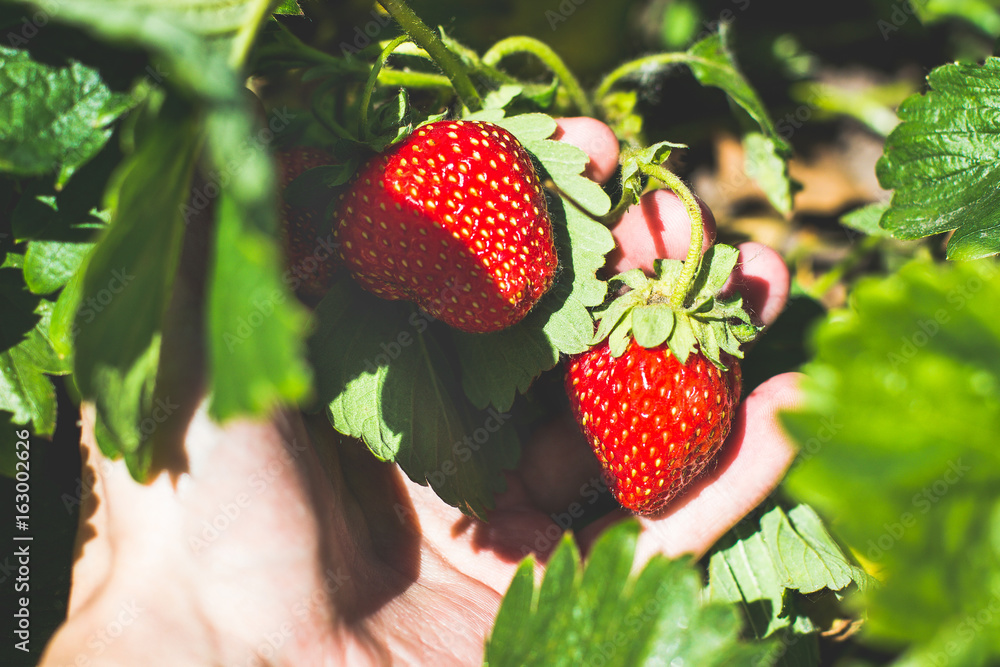 Fresh Strawberry in the hand.