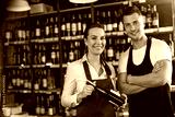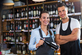 Young man and woman working at cafe
