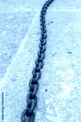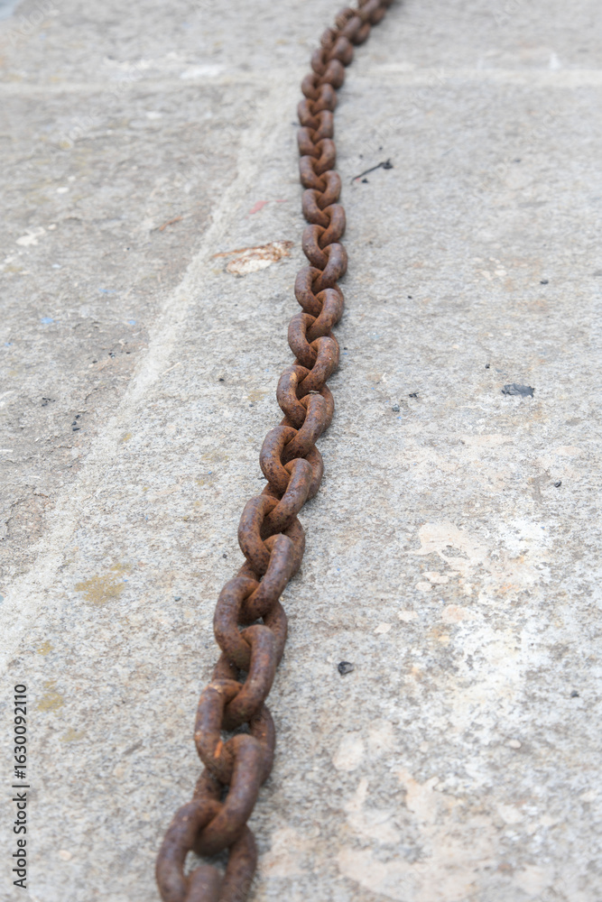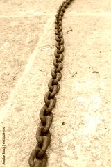 Alte rostige Stahlkette schlängelt sich quer durchs Bild als maritimes Symbol für Kraft, Weg, Halt und Ankern