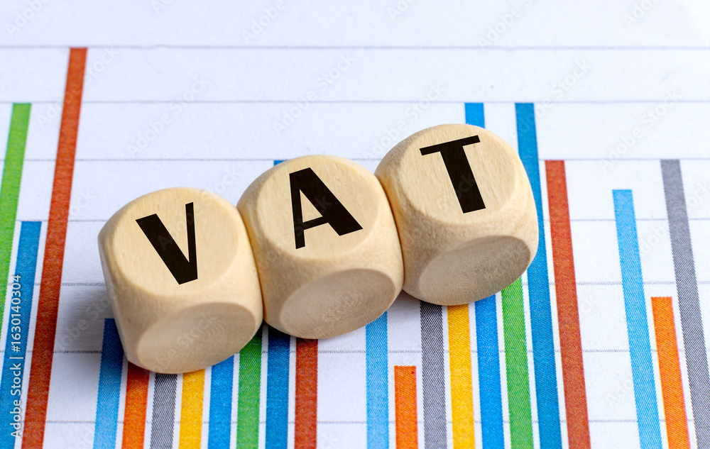 VAT acronym on wooden blocks with colorful bar chart in the background