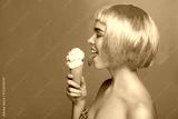 Side view of woman licking ice cream