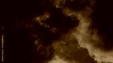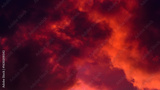 red cloudy mystical sky. artistic photo of clouds illuminated by setting sun. background dramatic sunset cloudscape. horizontal side view in 16x9 format