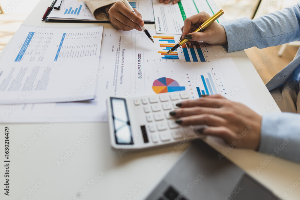 Auditor working in the office. Businesswoman meeting with consultant discussing financial situation analysis in business and marketing report. Financial planning, accounting and business strategy.