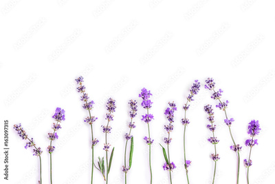 Fresh lavender flowers on a white background. Lavender flowers mock up. Copy space.