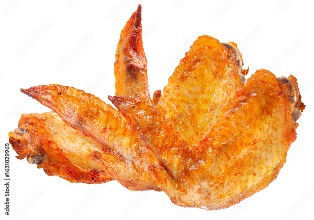crispy fried chicken wings on transparent background.
