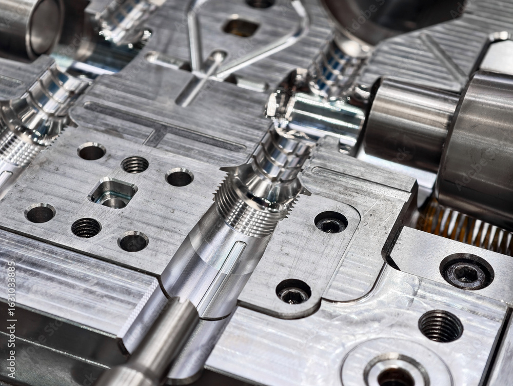 Metal molds used for precision plastic injection molding displayed in a manufacturing facility during daylight operations