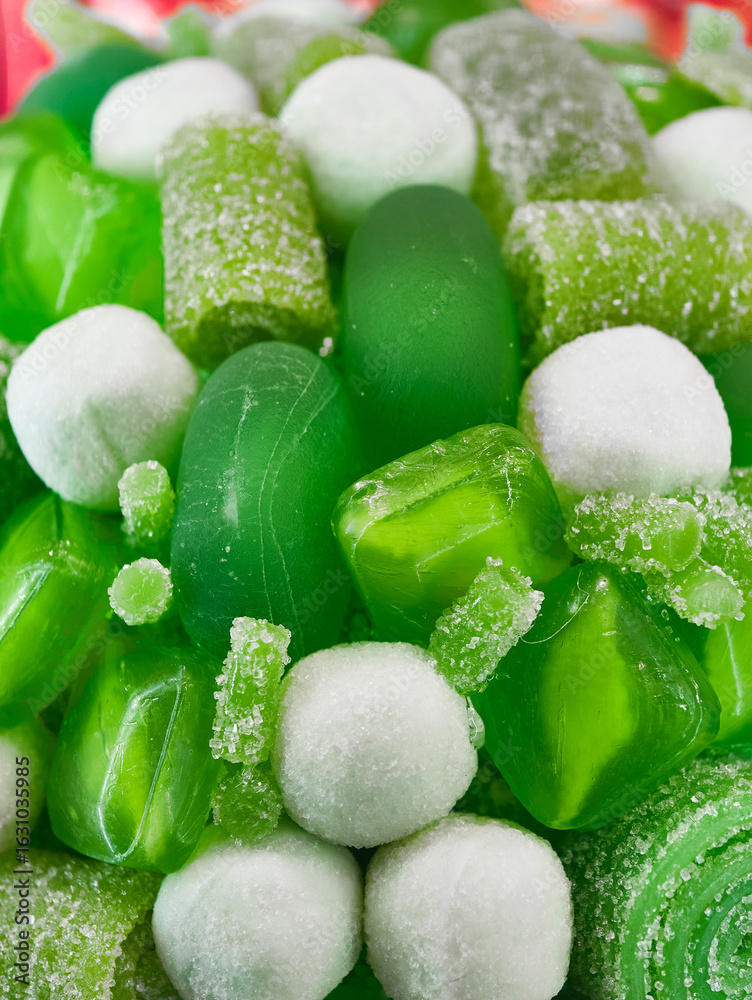 Colorful green candy assortment captures the joyful essence of sweet treats perfect for any festive celebration or casual gathering