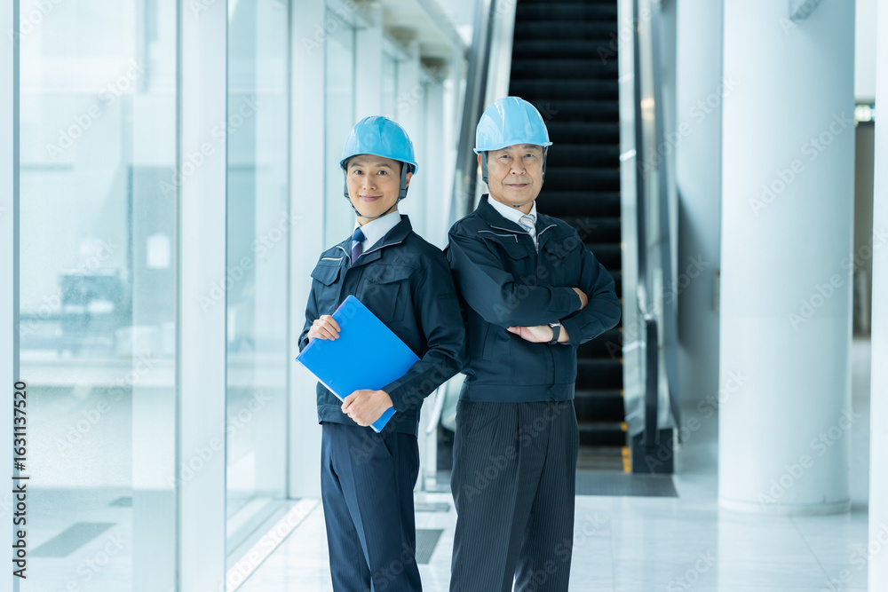 現場で打ち合わせする作業服のビジネスマン
