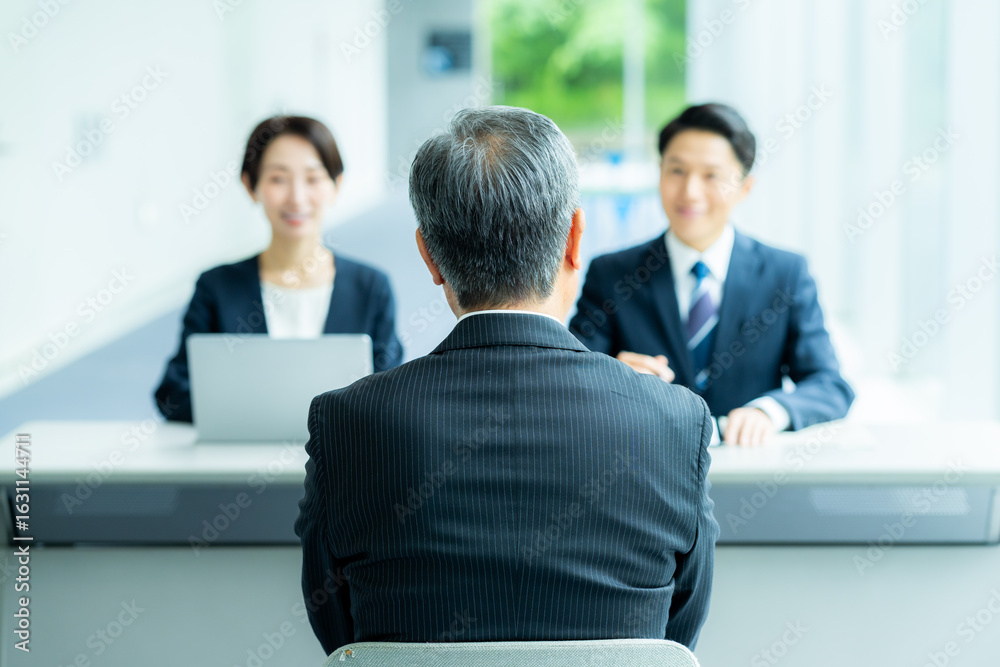 面接を受けるシニア男性