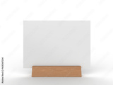 3D Realistic table stand, table tent mockup with metal base and white paper acrylic. Blank card holder display information for menu label, restaurant, cafe, banner, picture stand, sign holder, ads