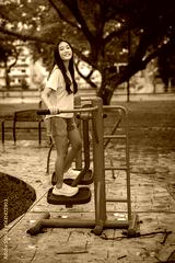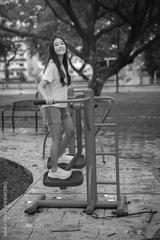 Young Woman Engaging in Outdoor Fitness Activity at Equipment Park