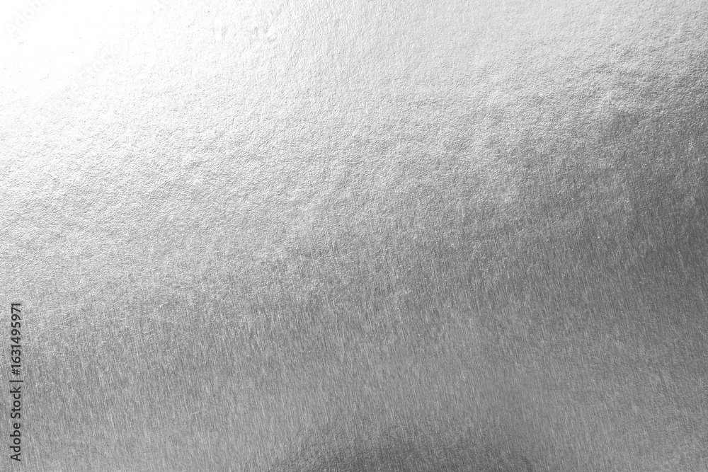 Silver background foil leaf metallic texture wrapping paper shiny glowing white grey solid reflective gradient color metal pattern backdrop for wallpaper decoration element backdrop