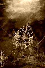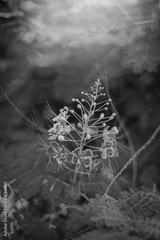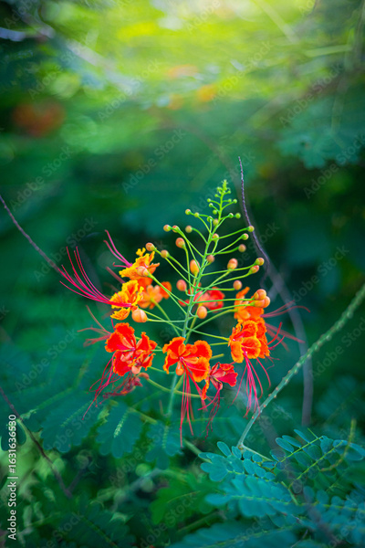Vibrant red and orange peacock flower close-up
