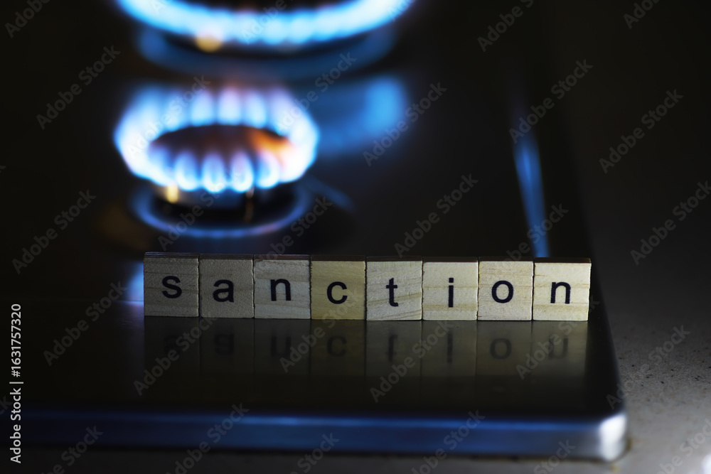 Sanction Concept Represented with Scrabble Tiles on Gas Stove Background