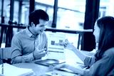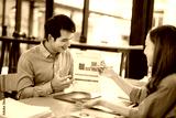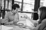 A man and a woman are sitting at a table with a piece of paper in front of them
