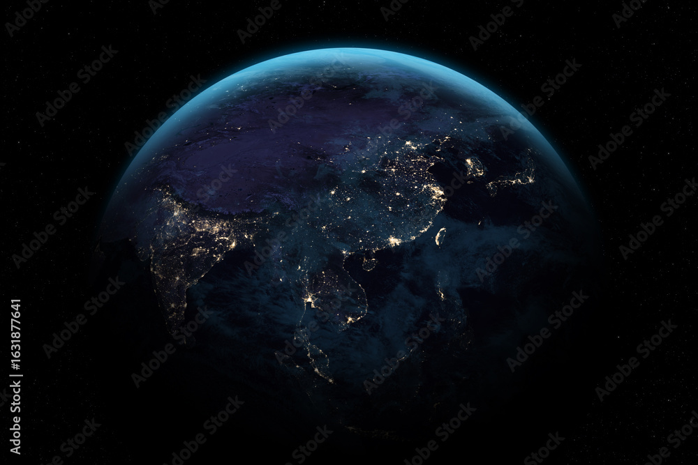 Earth At Night. East Asia and South Asia. India, China, Japan, North Korea, South Korea, Taiwan, Philippines, Singapore, Malaysia and other countries.