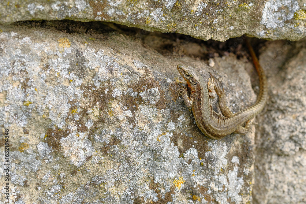 Wall lizard (Podarcis muralis) on a wall close-up animal