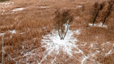 Flying above cold wetlands and white steam in winter.