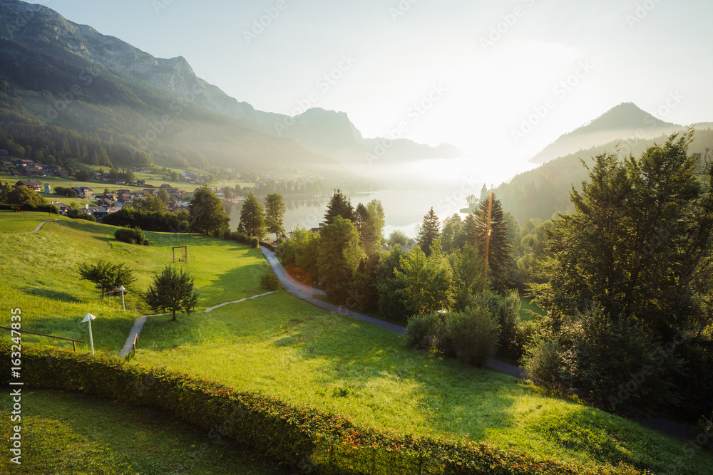 Location resort Grundlsee, Liezen District of Styria, Austria, Alps. Europe. Beauty world.