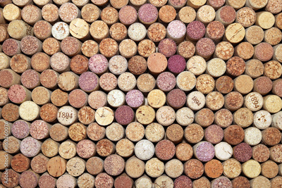 Closeup pattern background of many different wine corks, wine corks background, different wine corks texture
