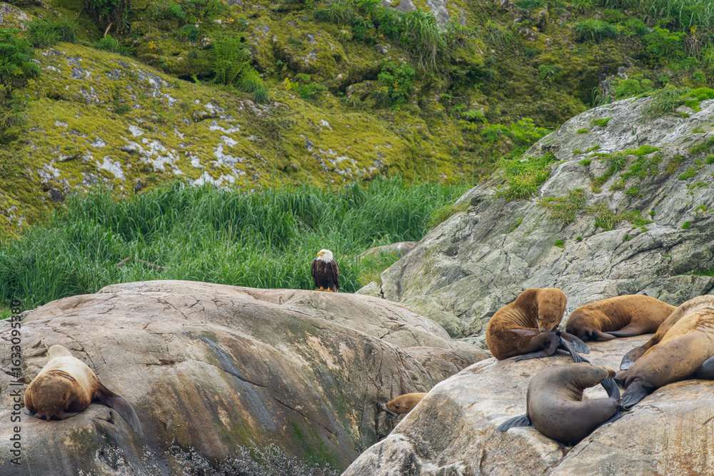 Bald Eagle with Stellar Sea Lions