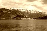 Lake Como Town with Snowy Alps in Background