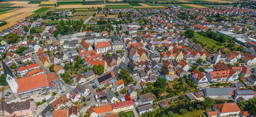 Die schwäbische Stadt Gundelfingen an der Donau im Landkreis Dillingen von oben