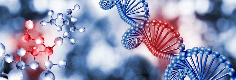 Exploration of molecular structures and DNA strands in a vibrant scientific background