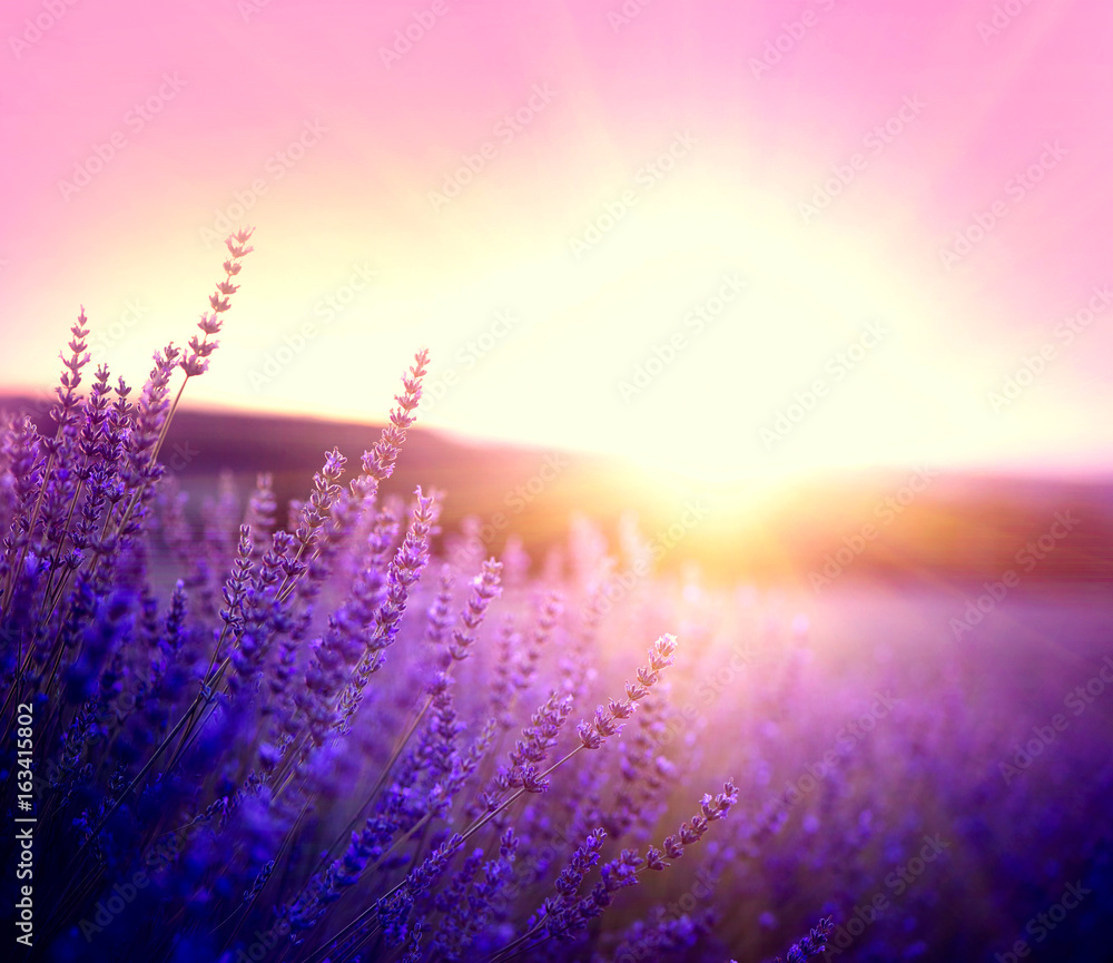 Lavender field in Provence, France. Blooming violet fragrant lavender flowers