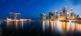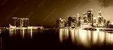 Panoramic photograph of Singapore skyline at night. Central Business District, Fullerton Park at the newly built Jubilee Bridge.