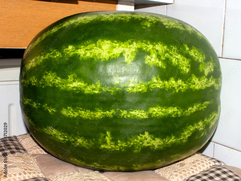 Watermelon is an annual herbaceous plant of the pumpkin family.Ripe juicy watermelon.Sugar watermelon.Watermelon background.Astrakhan watermelon.