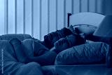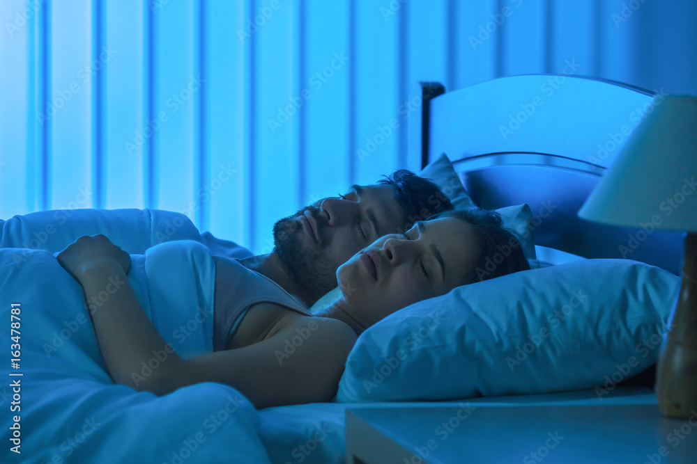 The couple sleeping in the comfortable bed. night time, full grip focus