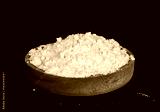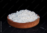 flour in a wooden plate on black background