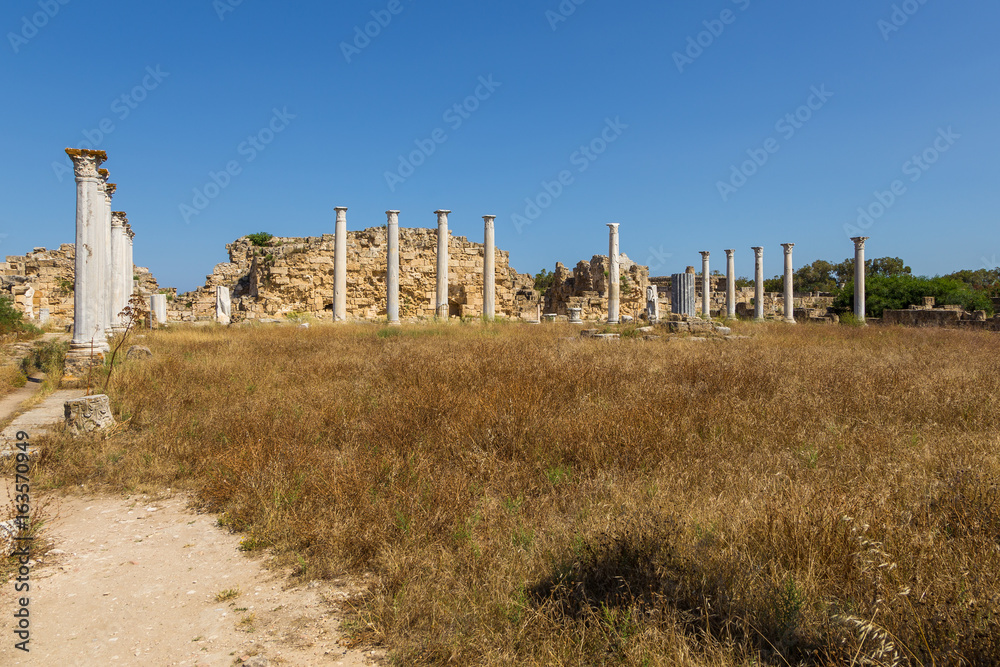 The columned courtyard at Salamis. Ancient ruins of Greek-Roman periods, Northern Cyprus