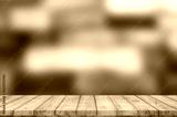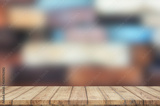 Wooden table top on blur background - can be used for display or montage your products.