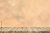 Wooden table top on blur background - can be used for display or montage your products.