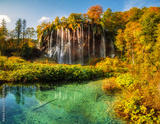 Amazing turquoise water in Plitvice Lakes National Park, Croatia. World heritage site. autumn landscape
