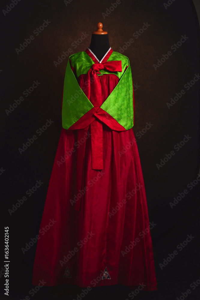 Hanbok on a display mannequin. Hanbok is Korean traditional clothes consist of a blouse called jeogori and a skirt called chima