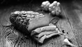 Smoked ham sliced on a wooden board