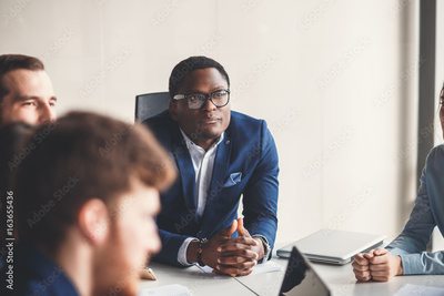 Businessman presenting to colleagues at a meeting