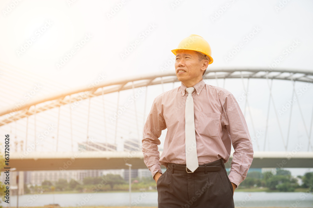 asian senior business architect in safety helmet